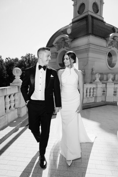 What a joy it was to capture the wedding of this wonderful couple – he from the UK, she from Hungary, both building a cosmopolitan life together in Dubai. With a shared passion for traveling the world – he as a pilot and she as a stewardess – their story is filled with adventure, yet they cherish nothing more than being together and celebrating life with their closest friends. They chose the perfect place between the UK and Dubai to say “I do”: the breathtaking Castle of Botaniq in Hungary. This unique and luxurious castle, with its refined details and timeless elegance, set the stage for an unforgettable celebration. Surrounded by modern hydrangea décor, a romantic garden ceremony, and the castle’s enchanting backdrop, guests from all corners of the globe gathered to witness their love. It was a true celebration of connection, travel, and togetherness.